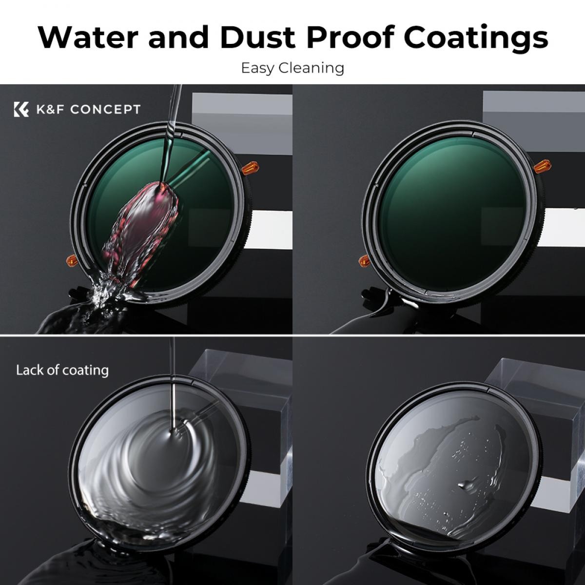 - * 【Sin cruces «X» en las fotos】Despídete de las cruces «X» en las fotos; K&F utiliza tecnología de vanguardia que te permitirá decir adiós a este problema habitual en los objetivos gran angulares y los filtros ND variables.