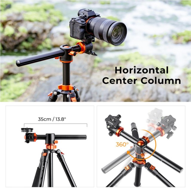K&F Aluminium Camera Tripod with Transverse Center Column T255A3+BH-28L