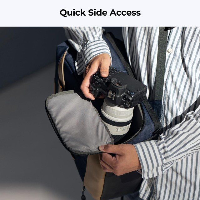 - * 【Apertura lateral para un acceso rápido】 La mochila para cámara K&F Concept 20L Blue es flexible, resistente y ligera, ideal para la fotografía, el senderismo y los viajes. Gracias a su apertura lateral, te permite acceder rápidamente a la cámara u otro equipo cuando necesitas capturar el momento.