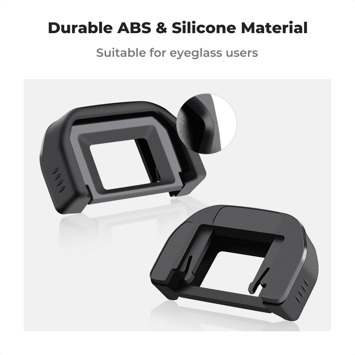 El kit incluye un par de visores de alta calidad que evitan la entrada de luz difusa en el visor y permiten obtener una imagen más clara y nítida, lo que resulta especialmente útil al fotografiar en exteriores o en entornos muy luminosos. Los protectores de ocular están fabricados en ABS resistente y silicona blanda, y protegen el visor de arañazos, golpes y el desgaste diario.