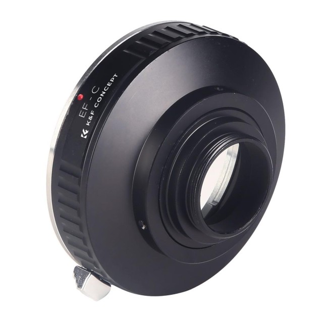 El adaptador K&F Canon EOS EF a C-Mount permite utilizar objetivos Canon EF en cámaras de cine y videocámaras con montura C-Mount. Destaca por su resistente estructura metálica y su manejo totalmente manual.