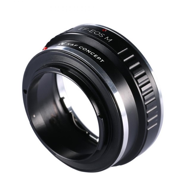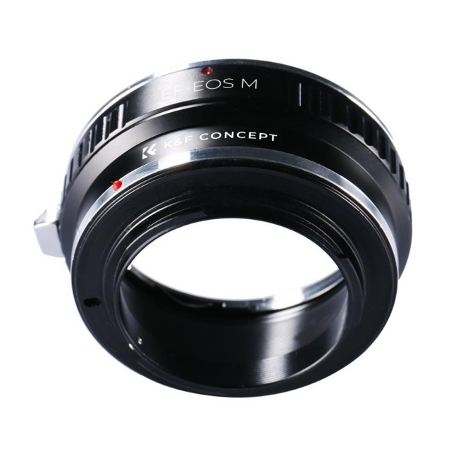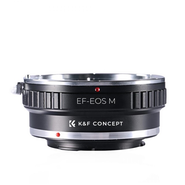 El adaptador de objetivo K&F Concept EF/EF-S para Canon EOS M permite acoplar objetivos Canon EF y EF-S a las cámaras sin espejo EOS M. Está fabricado en latón y aluminio resistentes y ofrece un acoplamiento preciso y estable con control totalmente manual y enfoque infinito. No es compatible con objetivos STM, como el EF 50 mm f/1,8 STM o el EF 18-135 IS STM.