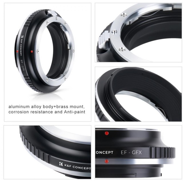 El adaptador K&F para objetivos Canon EOS EF a cámaras Fuji GFX permite a los fotógrafos acoplar objetivos Canon EF a las cámaras de formato medio Fujifilm GFX. Este adaptador es ideal para usuarios que desean aprovechar la amplia gama de objetivos Canon EF y, al mismo tiempo, disfrutar del gran sensor y la alta calidad de imagen del sistema GFX.