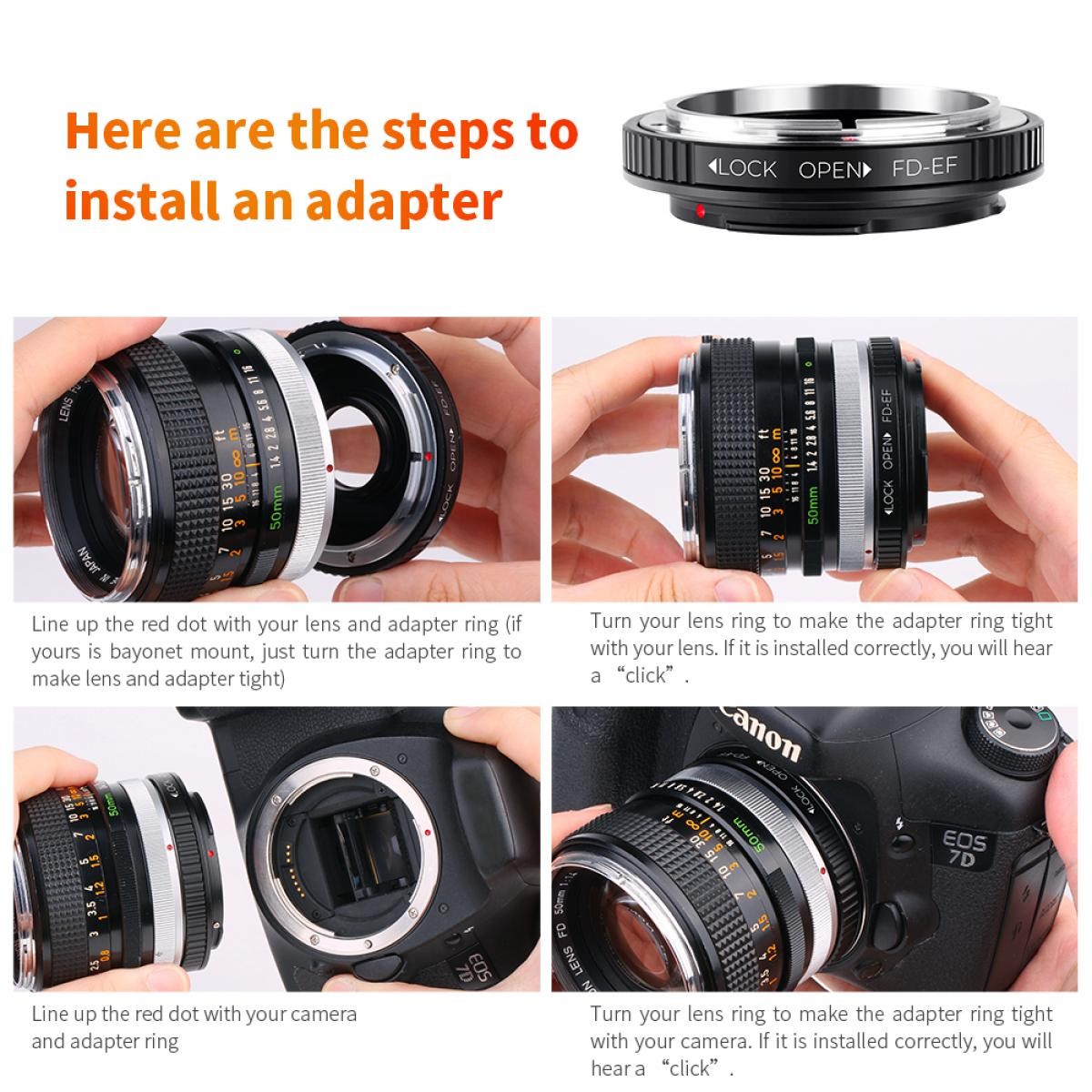 K&F Canon FD Lenses to Canon EOS Mount Camera Adapter with Optic Glass