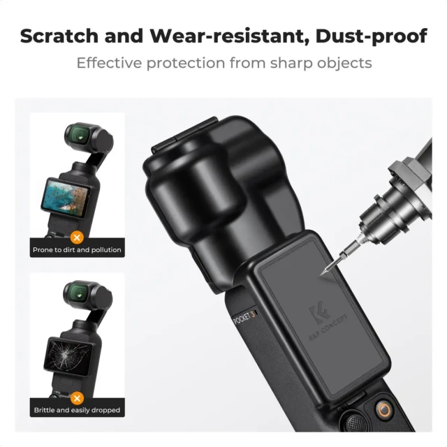 Funda protectora para el objetivo del gimbal, diseñada específicamente para el Pocket 3. La cubierta exterior ofrece una mayor protección y envuelve completamente el gimbal y el objetivo, por lo que no es fácil de quitar. La funda protectora del Pocket 3 está fabricada con materiales de alta calidad, es resistente y no se deforma. Resistente a los arañazos, las caídas y el polvo.