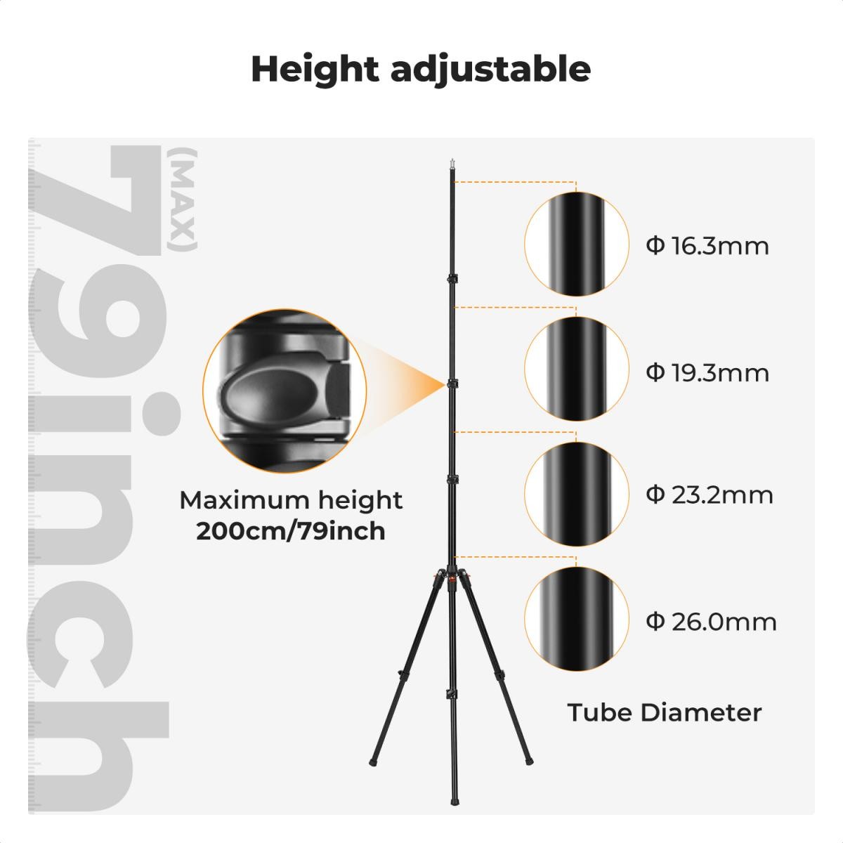 El trípode plegable de aluminio para iluminación K&F CONCEPT,de 2 m, incluye un tornillo de 1/4" y una bolsa. Ideal para luces circulares, softboxes, etc.
