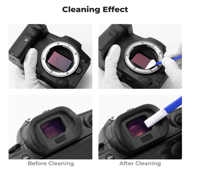 El kit de limpieza K&F Concept Full Frame Cleaning Kit es una solución 2 en 1 para sensores CMOS/CCD de fotograma completo de 24 mm y visores, que incluye 5 almohadillas de microfibra con doble función, 20 ml de solución limpiadora que no deja marcas y un envase sellado al vacío para un uso libre de polvo. Es ideal para cámaras sin espejo y DSLR, y garantiza una limpieza segura y precisa de objetivos, pantallas y ópticas sin arañazos ni residuos.