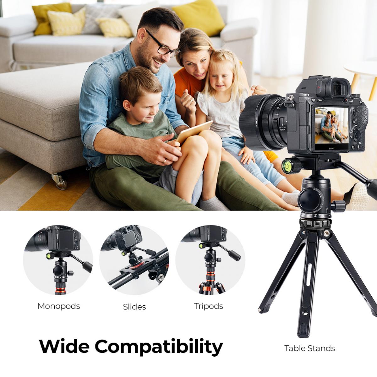 K&F Concept: rótula metálica de 26 mm para trípode con empuñadura; rótula panorámica giratoria de 360°