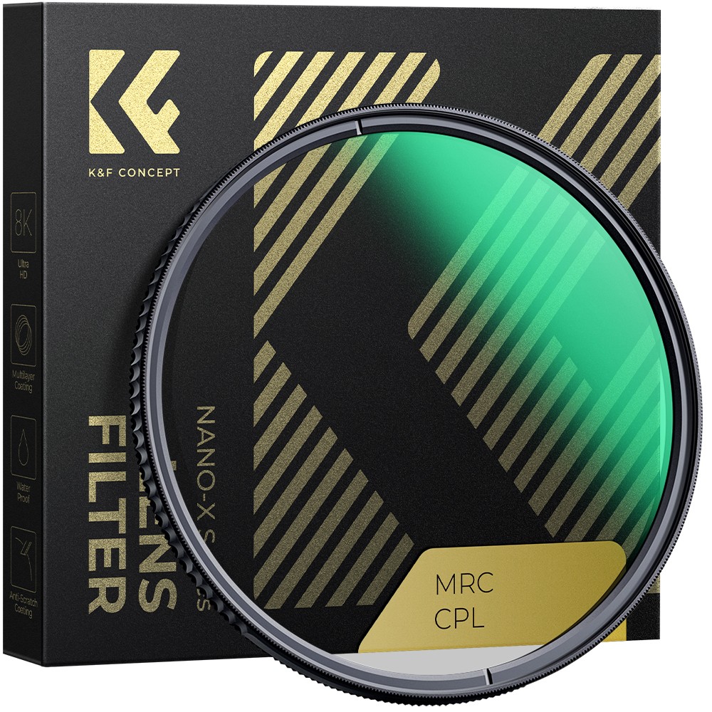 Filtro K&F Concept 39 mm Nano-X XC15 CPL: cristal alemán HD B270 con un revestimiento verde de 28 capas, resistente al agua y a los arañazos, diseño ultradelgado para colores vivos e imágenes sin reflejos.