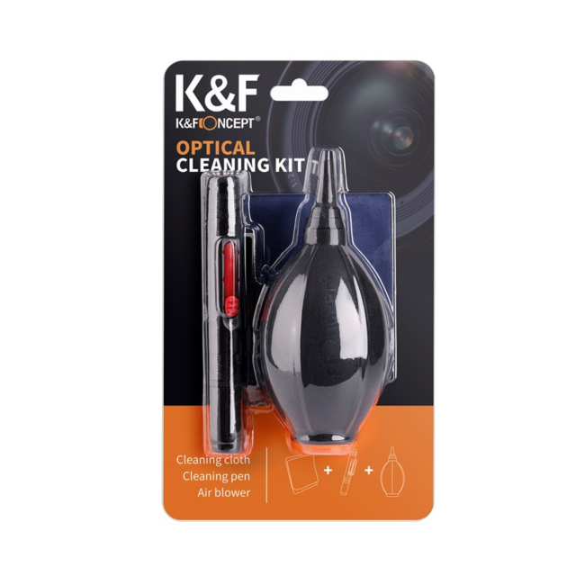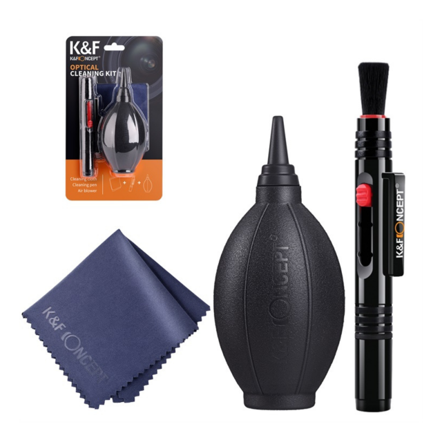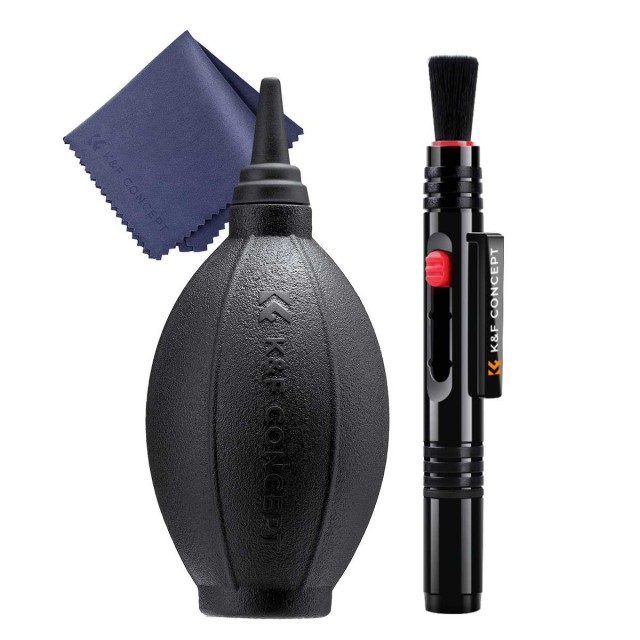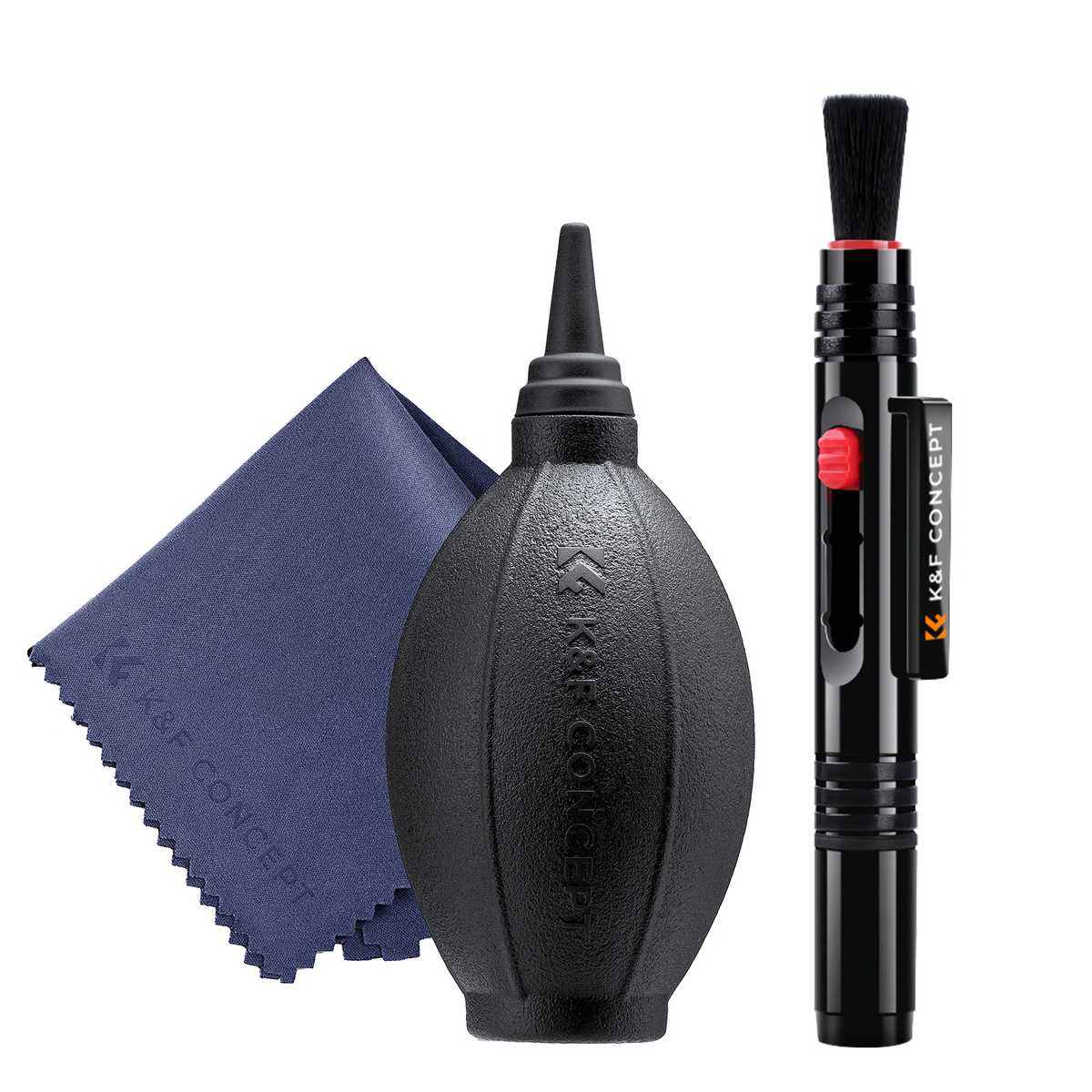 K&F Nuevo kit de limpieza 3 en 1 (1*lápiz limpiador + 1*ventilador de silicona + 1*paño de limpieza azul)