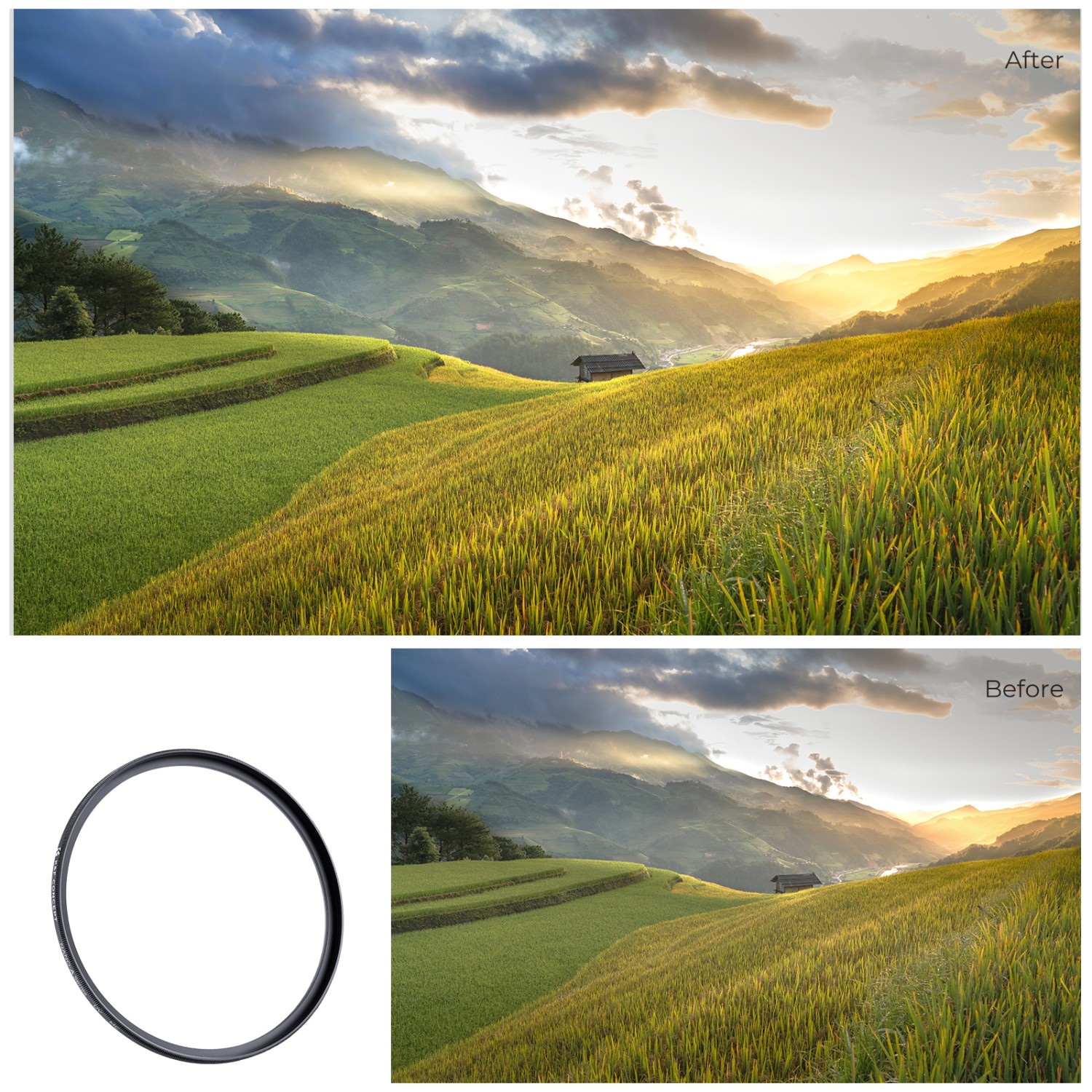 • K&F CONCEPT protege eficazmente contra la radiación MCUV a 320 nm y reproduce la luz visible con el color original del objeto.