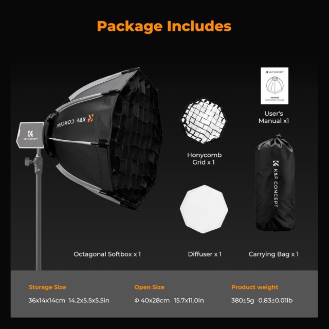 K&F CONCEPT 40cm mini Bowens mount octagonal softbox