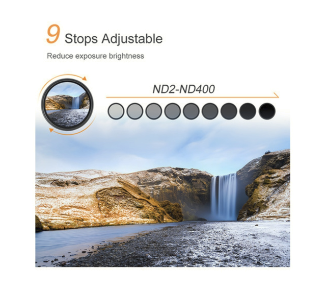 Este filtro VND es ideal para la fotografía de larga exposición, como capturar cascadas sedosas, el océano en calma o rastros de movimiento, así como para mantener velocidades de obturación cinematográficas bajo la luz diurna intensa. Gracias a la tecnología True Color, que elimina los desplazamientos de color que suelen producirse en los filtros ND variables, garantiza resultados de aspecto natural.