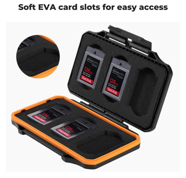 - Diseño compacto con gran capacidad: este estuche para tarjetas, con unas dimensiones de 127 x 80 x 19,4 mm, tiene capacidad para hasta 6 tarjetas de memoria XQD o 6 tarjetas de memoria CFexpress Tipo B, lo que proporciona un almacenamiento suficiente en un formato portátil.