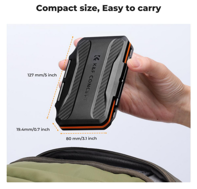 Protege y organiza tus valiosas tarjetas de memoria con el estuche K&F Concept para tarjetas XQD y CFexpress tipo B con 6 ranuras, que cuenta con una carcasa resistente al agua de ABS, un revestimiento interior de EVA de alta precisión y un diseño compacto y fácil de transportar, ideal para fotógrafos y creadores.