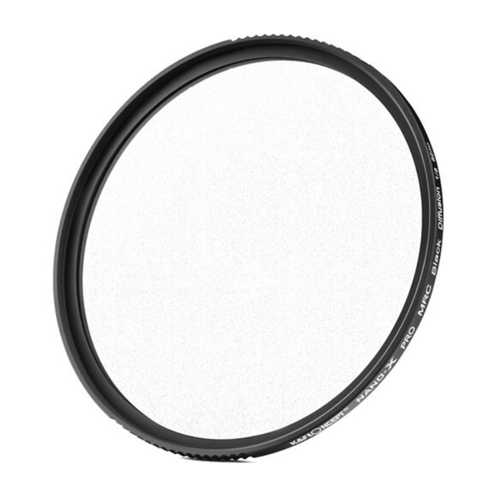 Filtro difusor negro K&F 1/8 con tratamiento superficial en ambos lados, hidrófobo, resistente a los arañazos y a los aceites, no afecta a la calidad de la imagen, fácil de limpiar y transportar.