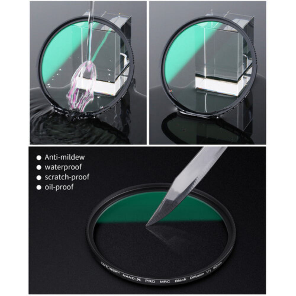 Con este filtro de K&F Concept podrás crear un efecto onírico en tus fotografías. El diseño «Black Mist» tiene una intensidad de 1/2, lo que ayuda a suavizar la piel en los retratos y crea un efecto de halo alrededor de las zonas claras. Además, ofrece una alta transmisión con un impacto mínimo en la exposición.