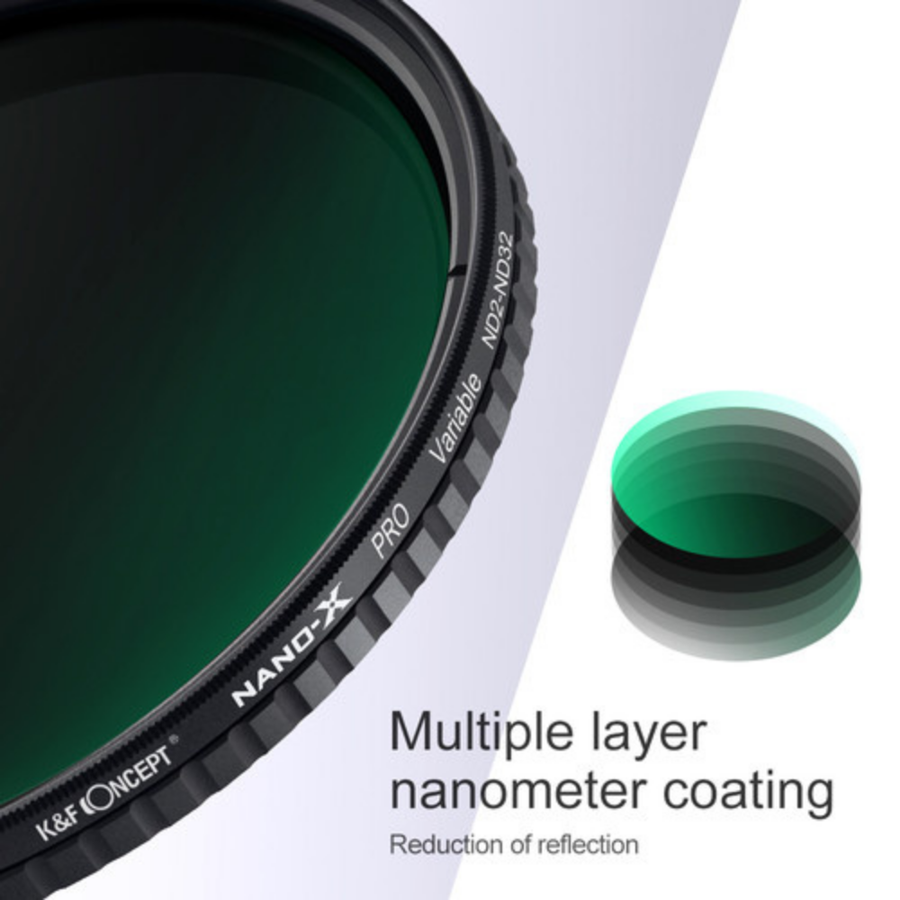 K&F Concept 77 mm XV38 Nano-X Filtro ND variable/fader, ND2~ND32, con o sin marco, negro