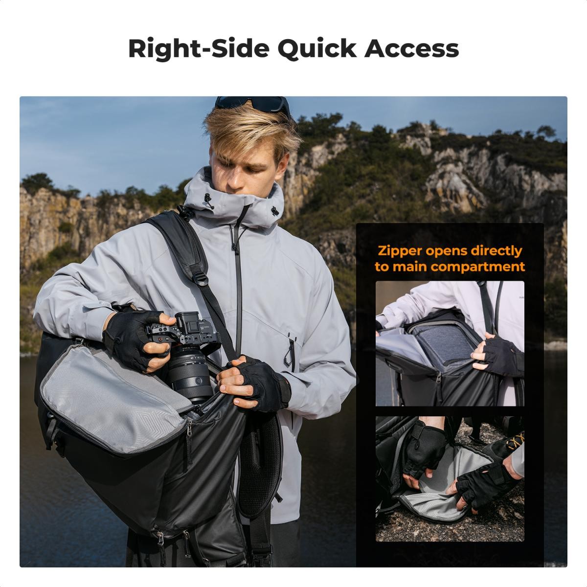 - * 【Espacio de almacenamiento personalizable con separador extraíble】Esta mochila cuenta con un separador interior profesional y 8 separadores ajustables que permiten organizar de forma flexible varias cámaras, objetivos, drones y accesorios. El panel interior se puede extraer o reubicar fácilmente para alternar entre la fotografía y el uso diario.