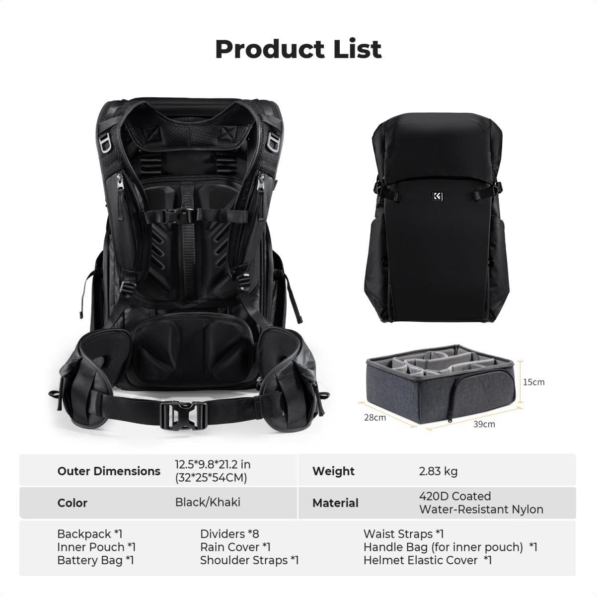 - * 【Resistente a la intemperie y fácil de limpiar】Fabricada con material de alta calidad resistente a las salpicaduras, que mantiene tu equipo seco y lo protege del polvo y de la lluvia ligera. La superficie exterior también se limpia fácilmente, lo que la hace ideal para fotografiar mientras viajas.