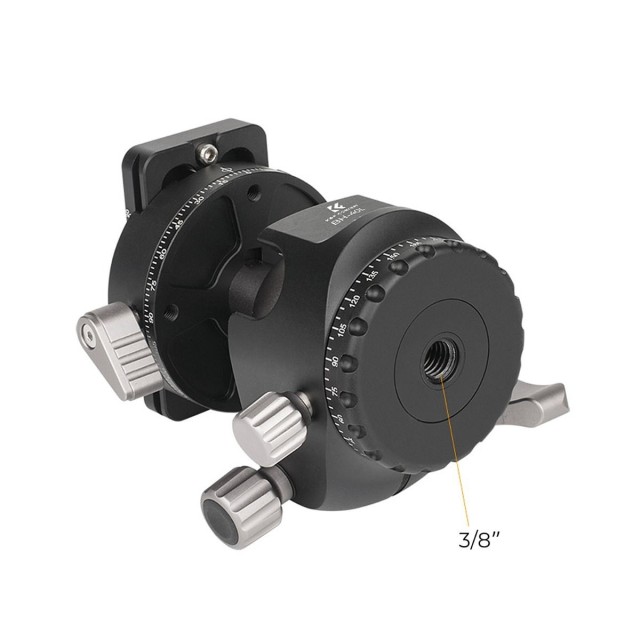 - El diseño de amortiguación sin aceite permite un giro fluido y preciso de la cámara; la base está delicadamente grabada con láser y se puede seguir y girar gradualmente en un rango de 0° a 360° en pasos de 5°. La escala horizontal de 360° es ideal para que los fotógrafos capturen imágenes panorámicas continuas.