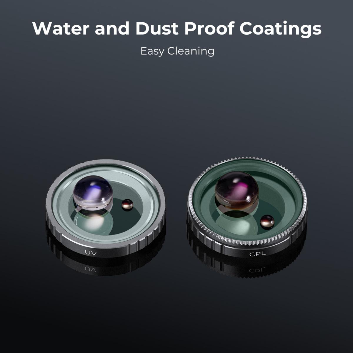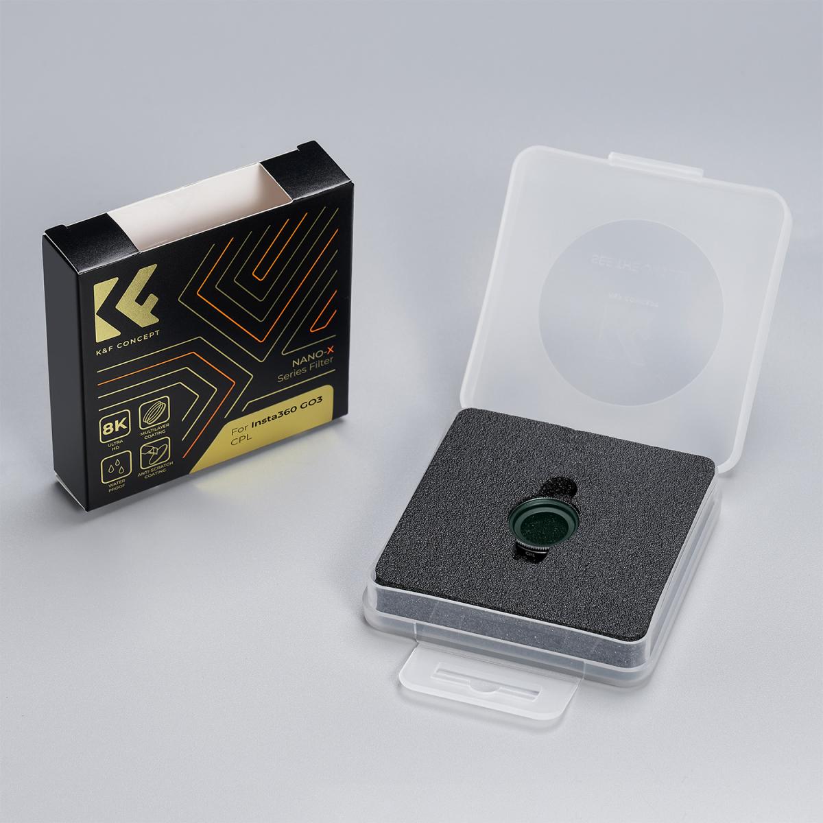 El filtro CPL de K&F Concept está diseñado específicamente para la cámara de acción Insta360 GO 3 e incorpora cristal óptico AGC de alta calidad para obtener imágenes nítidas como el cristal. Gracias a su avanzado cristal multicapa de 28 capas y al tratamiento de polarización, aumenta la intensidad del color, reduce los reflejos y garantiza una calidad de imagen óptima, lo que proporciona imágenes escénicas vívidas y espectaculares. El filtro está fabricado con capas nanométricas que protegen contra el agua y los arañazos, mantiene una alta transmisión de más del 99,5 % y su diseño de marco ultradelgado evita el viñeteado.