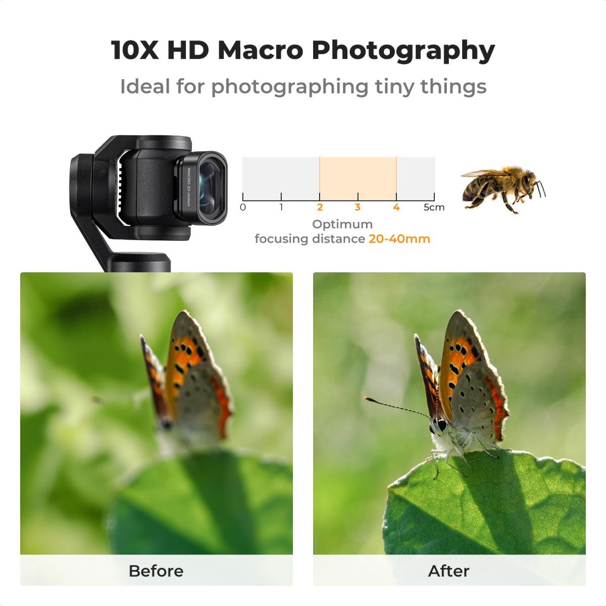Filtro DJI Osmo Pocket 3 (Macro), aumento de 10x, distancia mínima de enfoque de 25-40 mm. Lente para primeros planos 10X. Admite una distancia mínima de enfoque de 20-40 mm; captura los detalles más sutiles de la vida con esta herramienta imprescindible para los entusiastas de la fotografía macro y disfruta de la belleza de la fotografía macro.