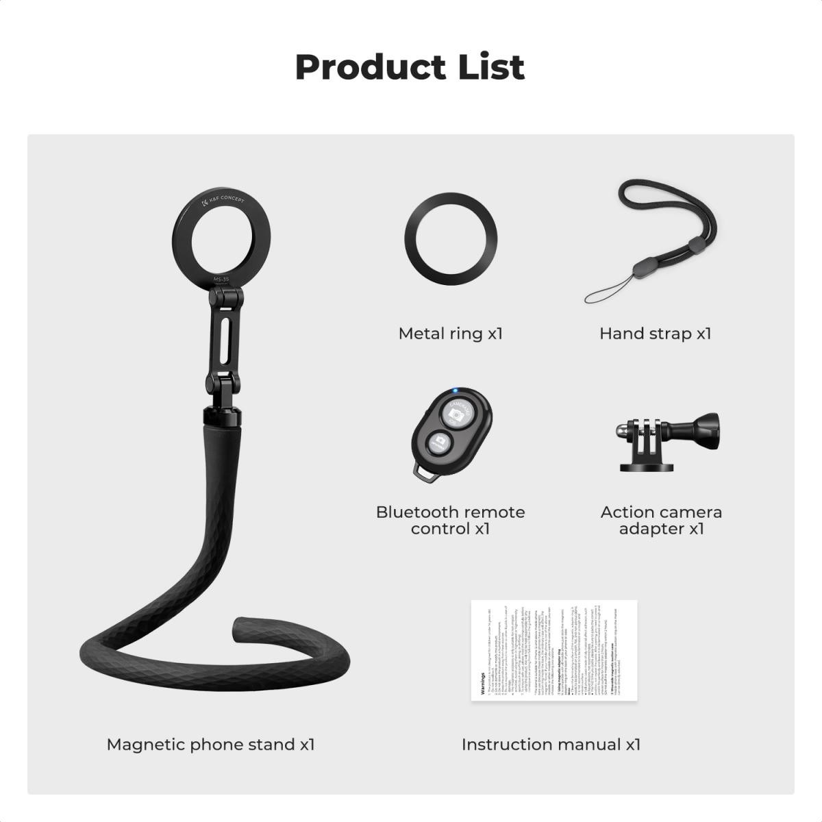 Soporte magnético flexible para teléfono móvil, con guía magnética, mando a distancia Bluetooth, cordón para el teléfono móvil y adaptador para GoPro. Diseño de fijación magnética Magsafe, anillo de fijación magnético integrado, con 16 potentes imanes de neodimio (N52).