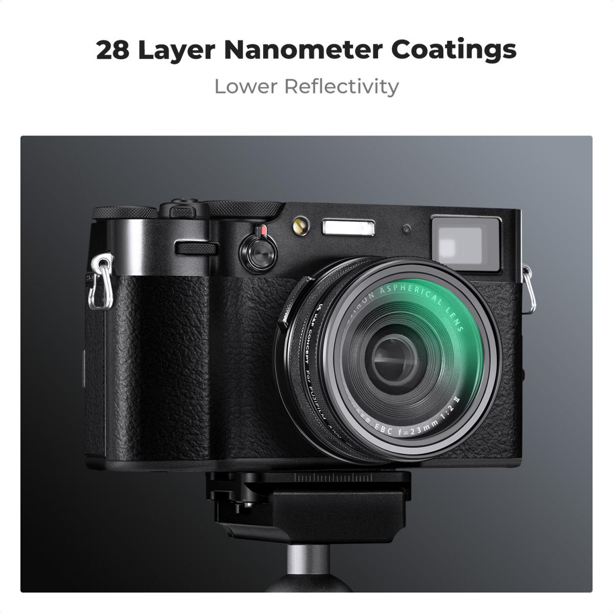 El filtro negro para niebla de 1/4 aporta a las imágenes un suave efecto de halo onírico y, al mismo tiempo, reduce el contraste y la nitidez al fotografiar. Suaviza la textura de la piel, reduce las imperfecciones y confiere a los tonos de la piel un aspecto más suave y natural. Compatible con las cámaras Fujifilm X100/X100F/X100S/X100T/X100V/X100VI.