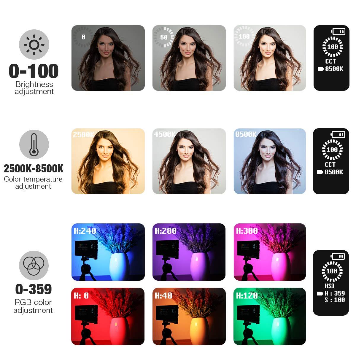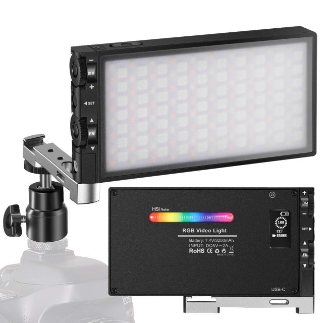 Luz de relleno RGB a todo color, linterna de bolsillo, batería recargable integrada de 12 W, luz LED para cámara de 360°, 12 efectos de luz, luz de vídeo en panel de aleación de aluminio