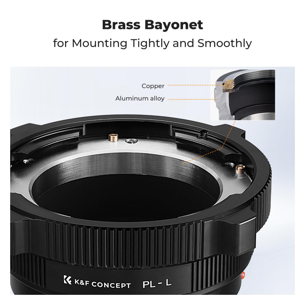 Adaptador de alta precisión K&F Concept PL-L: adaptador manual de PL a L-mount con enfoque continuo, fabricado en aluminio anodizado duro y con interior mate, para cámaras Leica, Panasonic LUMIX y Sigma L-mount.