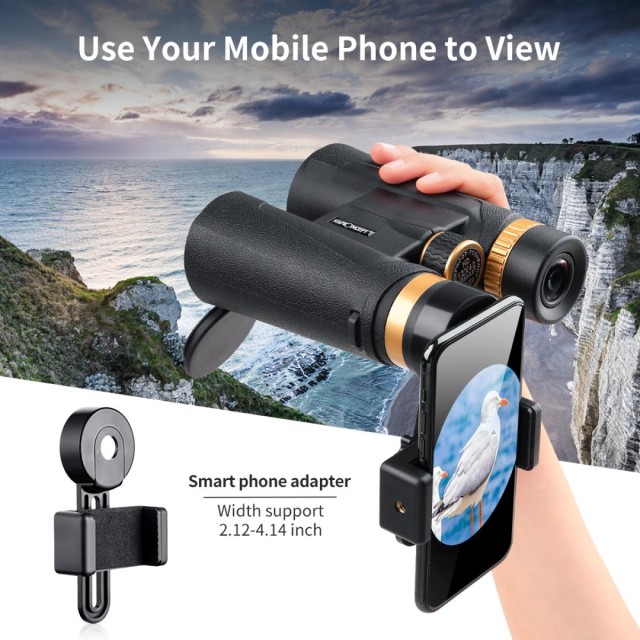 Enfoque con gran aumento 12×42: aumento de 12×42 con alta resolución, buena combinación del sistema óptico y el rendimiento básico, imagen nítida, visión clara. El ocular ampliado de 20 mm proporciona un ángulo de visión amplio y grande con suficiente entrada de luz. La lente cuenta con un tratamiento multicapa que evita el efecto de mareo, garantiza una imagen nítida y clara y aumenta la comodidad de observación. Lente con un gran diámetro de apertura de 42 mm, campo de visión más amplio que permite ver con mayor claridad y nitidez paisajes y animales lejanos, captando la imagen más nítida, clara y estable durante la observación de aves; aumento ideal, campo de visión de 101/1000 m.