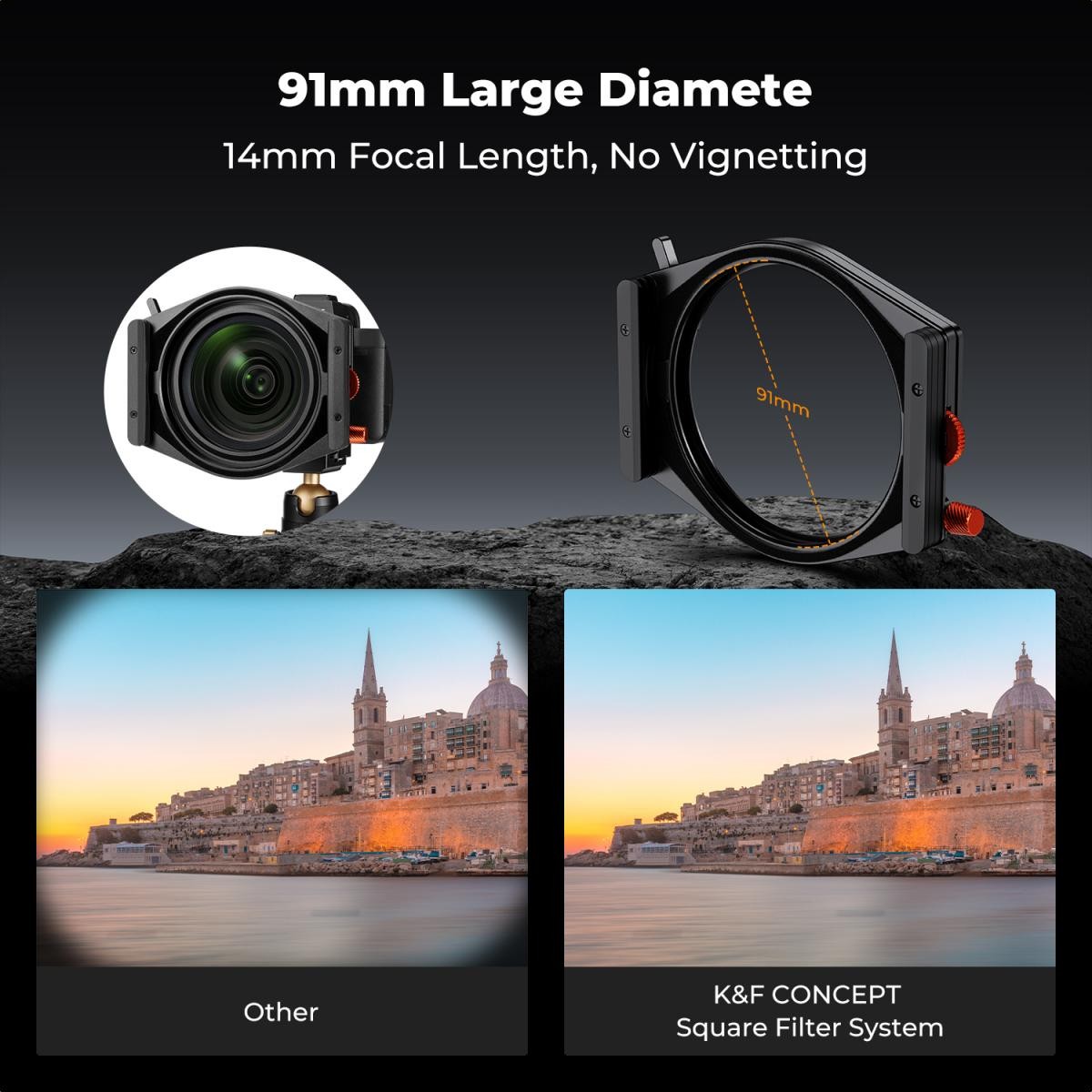El sistema K&F Concept KF High-End Square Bracket System es un avanzado y galardonado conjunto de soportes para filtros diseñado para fotógrafos profesionales que exigen la máxima nitidez de imagen y flexibilidad. Su innovador soporte ultradelgado de 12 mm con filtro polarizador circular de 95 mm integrado garantiza una vineta nula en objetivos gran angulares y, al mismo tiempo, ofrece un manejo rápido e intuitivo. El filtro CPL de alta gama está equipado con cristal óptico importado con un recubrimiento nano de 36 capas, que proporciona una precisión de color excepcional, alta transmisión de luz y una excelente resistencia al agua, al aceite, a los arañazos y a los reflejos. Este sistema de montura multifuncional admite hasta dos filtros cuadrados más el CPL integrado, lo que resulta ideal para los fotógrafos de paisajes que confían en combinaciones de ND, GND y CPL. El kit incluye cuatro adaptadores (67 mm, 72 mm, 77 mm, 82 mm) que garantizan la compatibilidad con una amplia gama de objetivos.