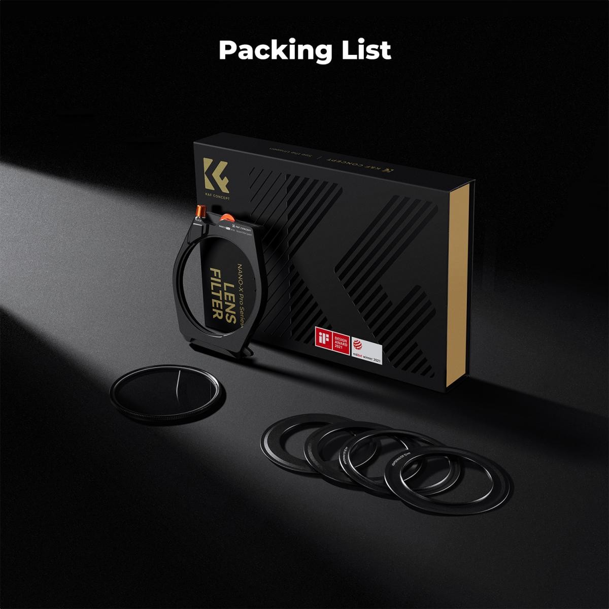 El sistema K&F Concept KF High-End Square Bracket System de la serie Nano X Pro es una solución premium para la fijación de filtros, que destaca por su diseño ultradelgado y su filtro CPL de 95 mm integrado. Está diseñado para eliminar el viñeteado incluso con objetivos ultra gran angulares, y ofrece una construcción galardonada, una óptica de 36 capas con nanorrevestimiento y compatibilidad con objetivos de distintos tamaños gracias a los anillos adaptadores incluidos.