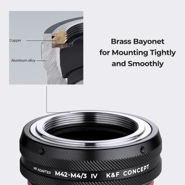 Aprovecha todo el potencial de tus objetivos de la serie M42 en los cuerpos de la serie M4/3 con nuestro anillo adaptador. Este anillo, con control totalmente manual y una estructura antideslizante estable para mayor seguridad, es un accesorio imprescindible para cualquier fotógrafo. El logotipo con el punto rojo garantiza una alineación precisa y facilita el montaje y desmontaje sin esfuerzo. La estrecha unión entre el anillo adaptador y la montura garantiza una sujeción segura y sin holgura. Este resistente anillo, fabricado en una aleación de aluminio y magnesio de alta precisión, permite un funcionamiento cómodo y fluido de las funciones macro del objetivo, incluida la posibilidad de enfocar al infinito. Mejore su experiencia fotográfica gracias a este excepcional adaptador.