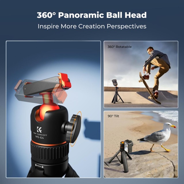 Este minitrípode de K&F CONCEPT está especialmente diseñado para la DJI Osmo Action 6 y la Osmo Nano. Su diseño de fijación rápida permite montarlo y desmontarlo con facilidad. Incorpora un potente imán y un clip que garantizan una sujeción firme y segura.