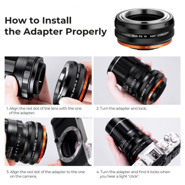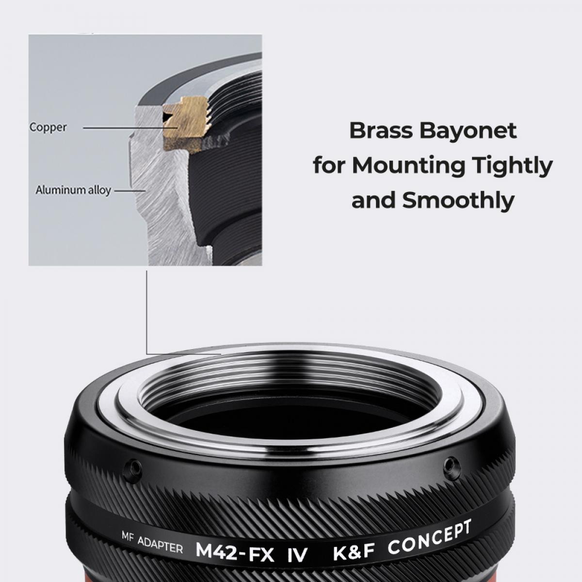 Adaptador de alta precisión K&F Concept M42 Series Lens para cámaras Fuji X Series con montura M42-FX IV PRO