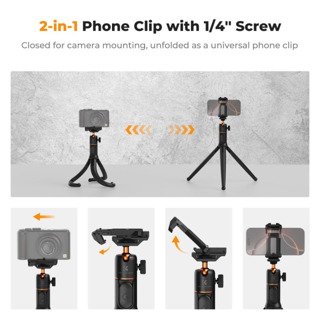 Ya sea para capturar paisajes impresionantes, grabar escenas de acción o hacer vlogs durante tus viajes, el trípode flexible K&F Concept MS29 es el compañero fotográfico perfecto.