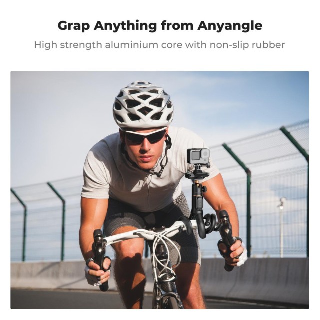 • Diseño ajustable y flexible: se extiende de 26 cm a 60 cm para ofrecer diversos ángulos de disparo. Las patas flexibles se ajustan de forma segura alrededor de barandillas, ramas o manillares, proporcionando un apoyo estable en cualquier terreno.