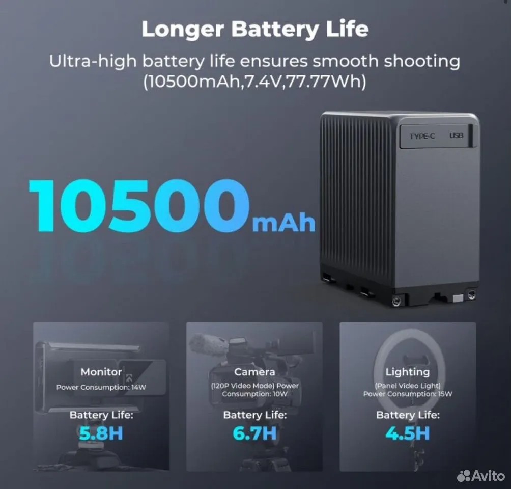 La seguridad está garantizada por un sistema de protección inteligente de varios niveles que protege contra la sobrecarga, la sobrecorriente, las fluctuaciones de tensión y el sobrecalentamiento. La batería está fabricada con plástico ABS resistente y policarbonato, es ligera pero resistente, lo que la hace ideal para su uso tanto en estudio como sobre el terreno.
