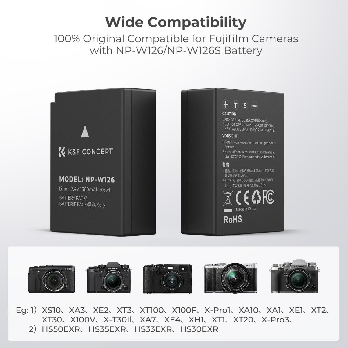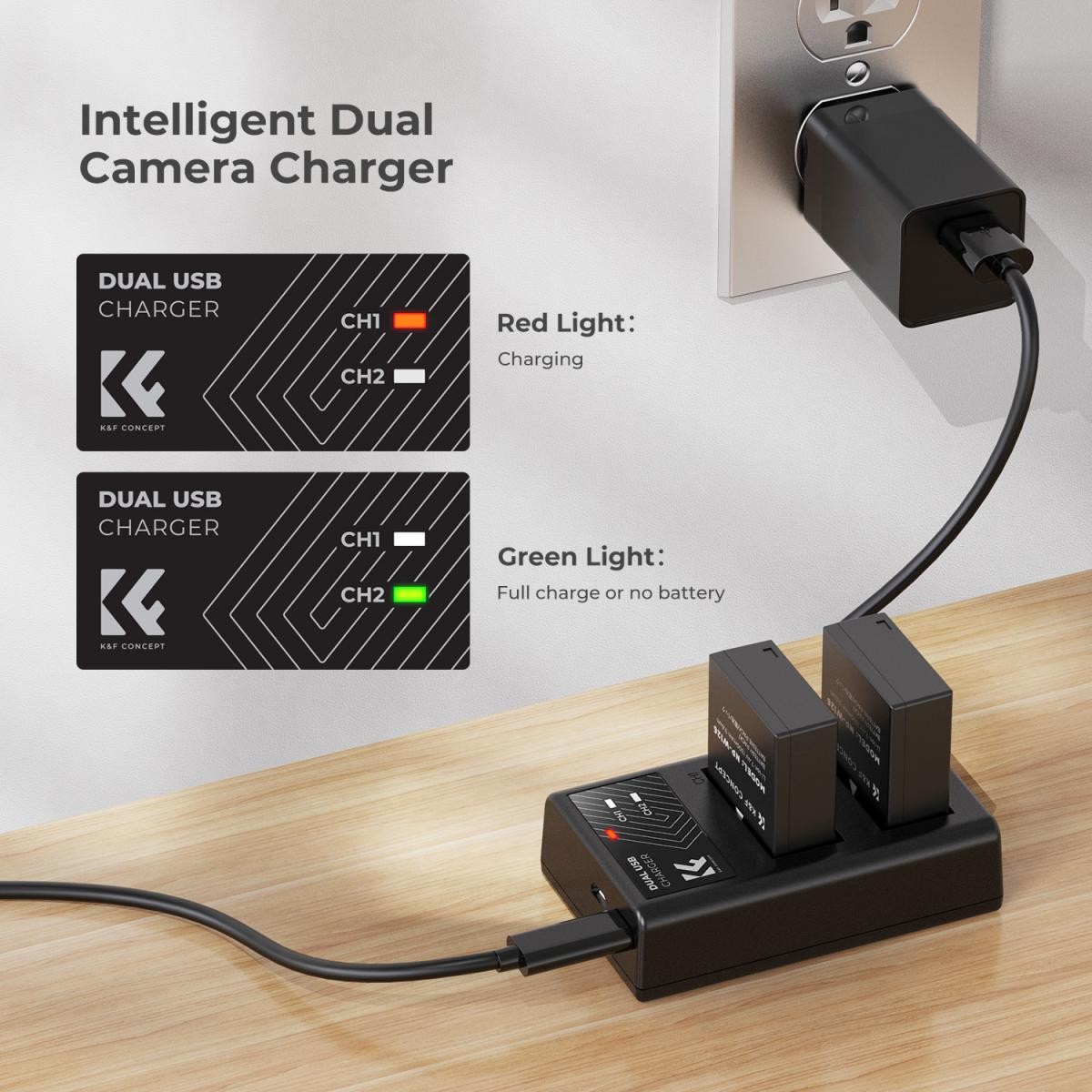 K&F CONCEPT NP-W126 1300mAh Digital Camera Dual Battery with Dual Channel Charger, for Fujifilm Camera