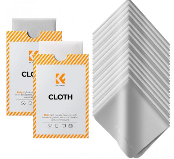 Los paños de limpieza K&F Concept Premium Microfiber están fabricados con precisión para el mantenimiento profesional de dispositivos ópticos y electrónicos. Están fabricadas con microfibra de alta densidad de 200 g/m² (80 % poliéster, 20 % poliamida) con fibras ultrafinas de 0,1 denier, que penetran en las microestructuras de la superficie para eliminar y capturar el polvo, las huellas dactilares, la grasa y los aceites sin sustancias abrasivas ni residuos de fibras. Cada paño, de 15 x 18 cm, está cortado con láser con bordes rectos para poder limpiar lentes, sensores y pantallas de esquina a esquina, minimizar el deshilachado de los bordes y prolongar la vida útil a más de 50 ciclos de lavado (lavado a máquina en frío, secado al aire). El envase ligero y portátil de 30 unidades cabe en un bolsillo o en una bolsa de cámara, lo cual es imprescindible para fotógrafos, videógrafos y usuarios de tecnología que limpian lentes DSLR, prismáticos, telescopios, smartphones, tabletas, monitores o joyas.