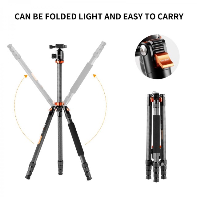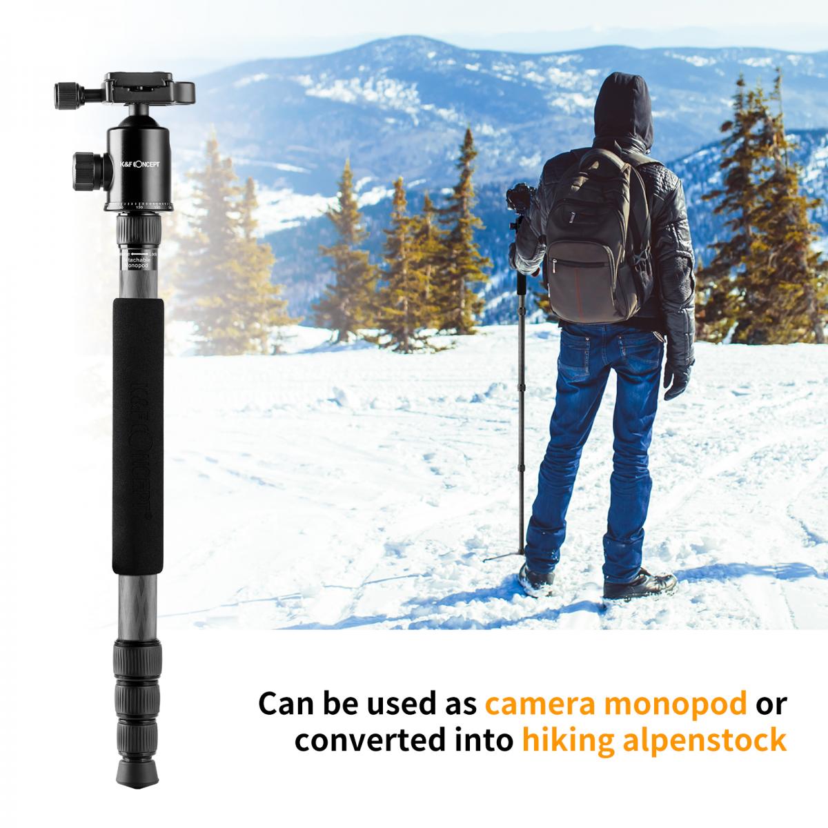 - * 【Monopié desmontable】Este trípode profesional de fibra de carbono se puede desmontar rápidamente mediante un tornillo de eje central y convertir en un monopié, lo que ofrece una forma alternativa de fotografiar con facilidad.