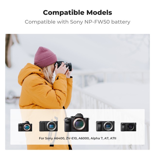 Recarga sin esfuerzo las baterías Sony NP-FW50 con el cargador K&F Concept 3-Pack para cámaras. Este cargador triple, con pantalla LCD inteligente y opciones de carga universales a través de USB o Type-C, garantiza que tus baterías estén siempre listas para la acción.