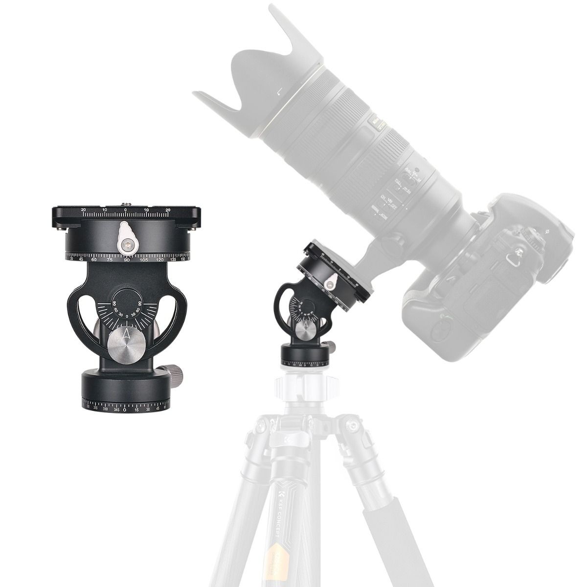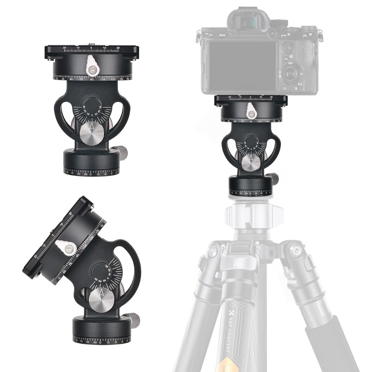 K&F Concept VH-60L Double Panoramic Design: rótula de trípode de aleación de aluminio. La placa de fijación rápida utiliza el estándar Acra y se puede instalar con gimbals de otras marcas. La interfaz roscada de la parte superior es un tornillo extraíble de 1/4 de pulgada, lo que puede resultar más cómodo a la hora de montar la cámara.