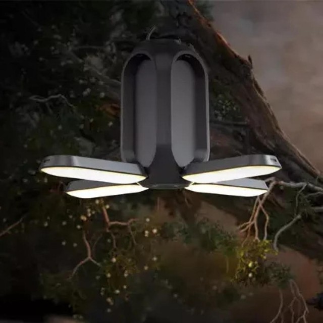 * Lámpara LED plegable: su estructura plegable de cuatro hojas está diseñada para ampliar el alcance de la iluminación y permitir ajustar fácilmente el ángulo y el área de iluminación; la estructura colgante permite colgar la lámpara a mayor altura e iluminar una superficie más amplia; además, te resulta fácil colocar la lámpara en entornos al aire libre, por ejemplo, en una tienda de campaña o en la rama de un árbol.