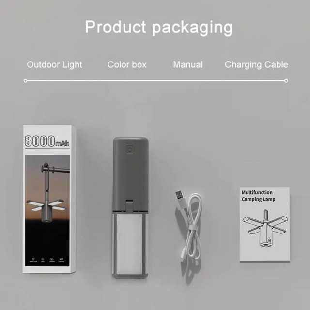 * [Larga duración] luz de acampada con batería interna de alta capacidad de 8000 mAh, 11 h con luz tenue y unas 3,5 h con luz intensa; también se puede utilizar como fuente de energía móvil de emergencia para exteriores, lo que le permitirá, en caso de emergencia, cargar rápidamente su teléfono móvil, iPhone, tableta y otros dispositivos mediante un cable de carga.