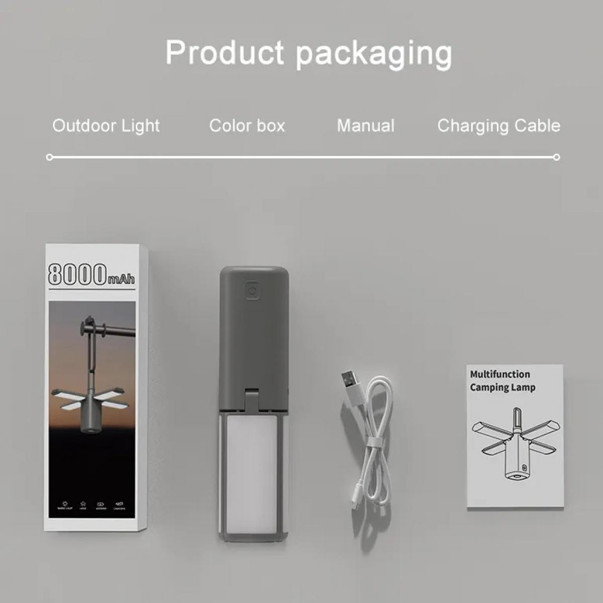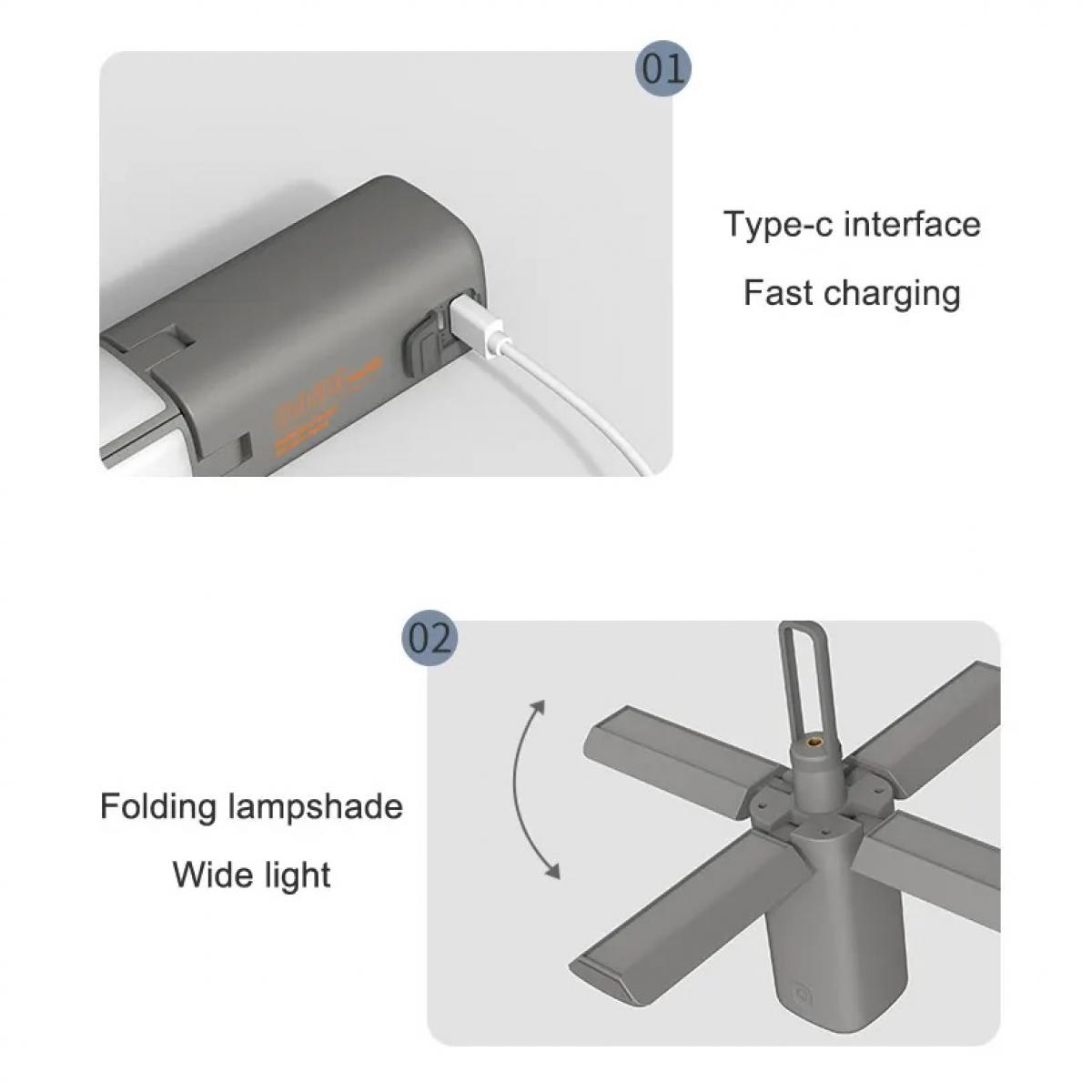 Lámpara de camping para exteriores XZ-08, lámpara de camping LED plegable y recargable, lámpara de techo para tienda de campaña, 4 modos de iluminación ambiental, ideal para acampadas, kits de emergencia para huracanes y viajes