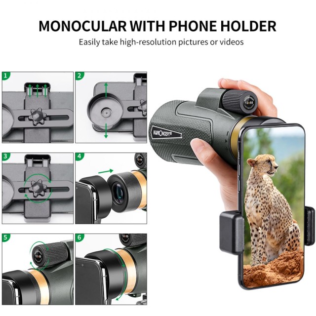 - [Monocular de alto rendimiento] Este monocular cuenta con un aumento de 12x, una lente de 50 mm y un amplio campo de visión de 90°/1000 m, lo que te permite ver más lejos y a mayor distancia. Ideal para la observación de aves, safaris, viajes, conciertos, observación de la vida salvaje, actividades deportivas al aire libre, etc.