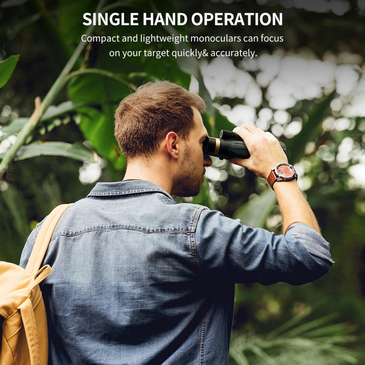 - [Óptica FMC de alta calidad] El tratamiento FMC y el prisma BAK4 de primera clase garantizan que la imagen que veas sea clara y nítida. Todas las estructuras están diseñadas para reflejar la luz de manera óptima, con el fin de mantener una buena calidad de imagen y ofrecerte una experiencia increíble. Un monocular profesional para todas las actividades deportivas al aire libre.